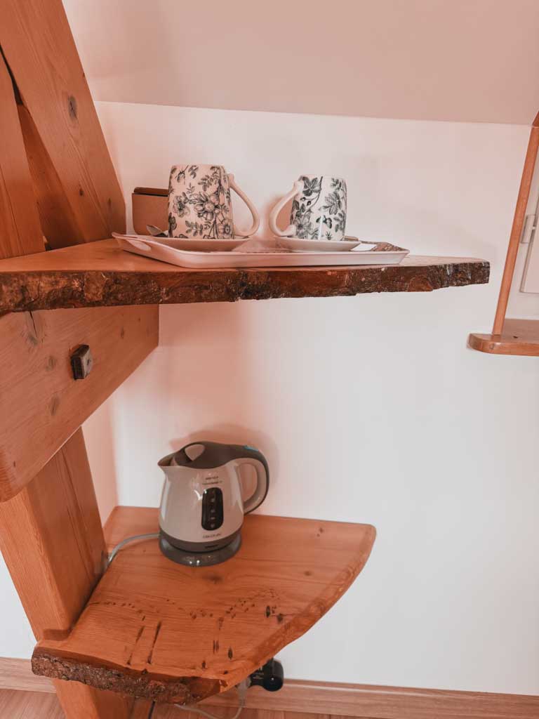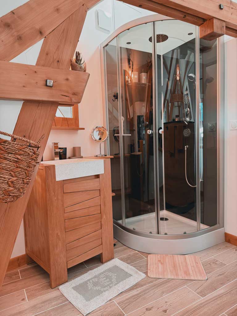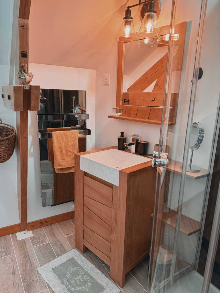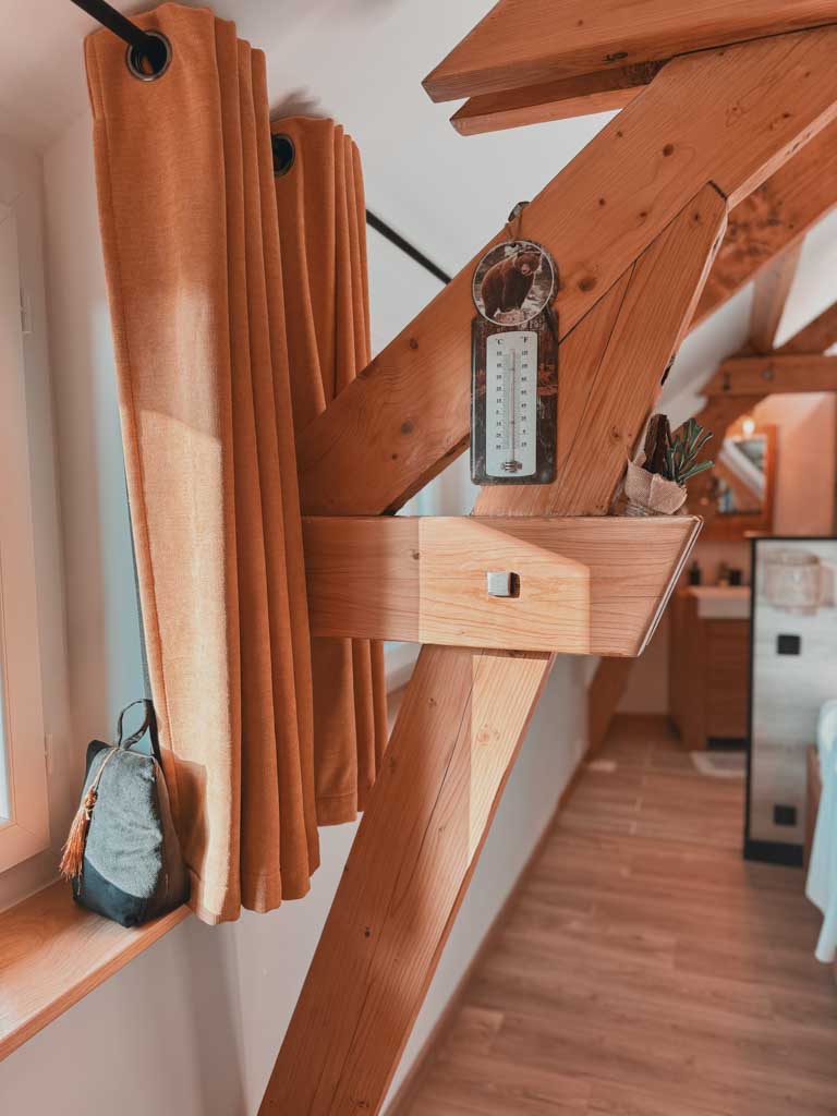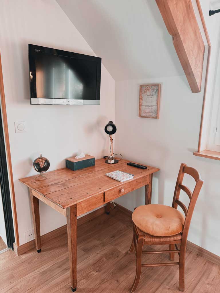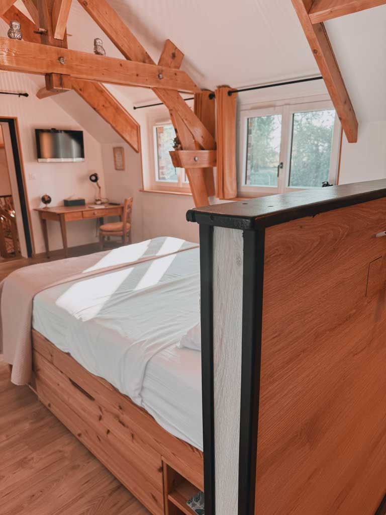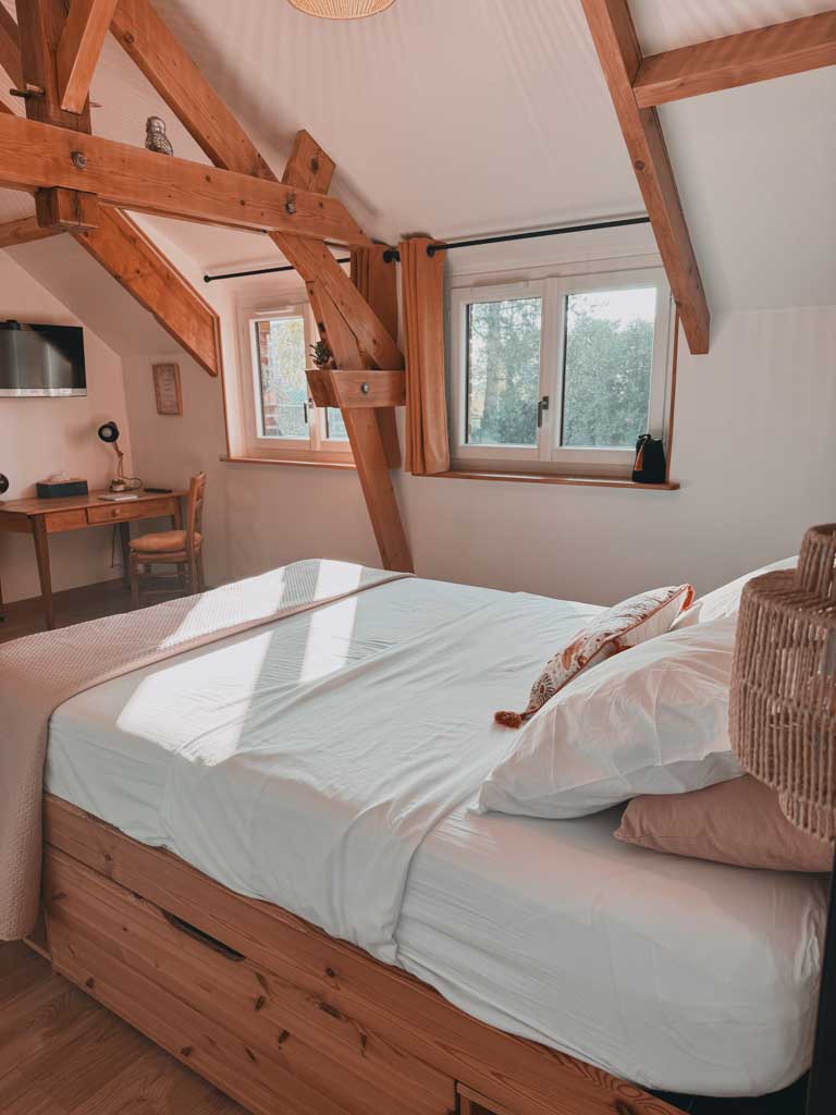 Avec ses poutres apparentes et son atmosphère chaleureuse, la chambre Rayley allie authenticité et modernité. Spacieuse et confortable, elle offre un lit double, un coin bureau, une salle de douche ouverte avec WC indépendant, ainsi que tout le nécessaire pour un séjour agréable : plateau de courtoisie, wifi gratuit et possibilité d’accueillir un enfant en bas âge grâce à un lit parapluie.